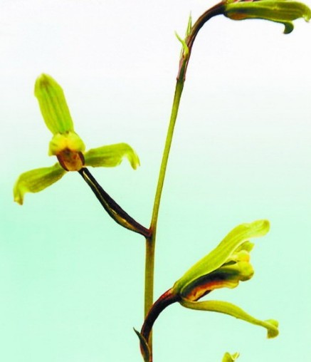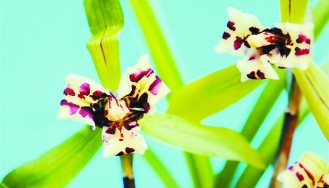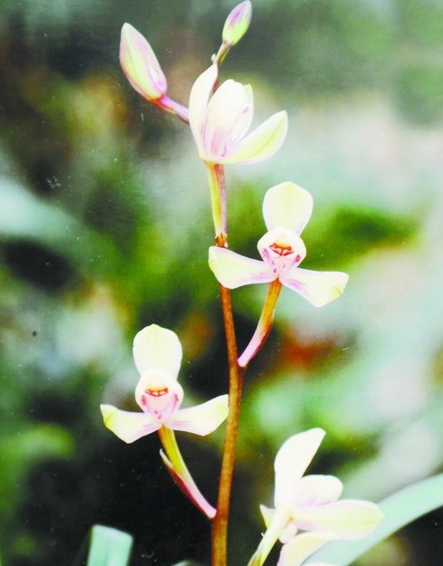 专家评语:本品产自福建,于2005年发现,花茎青色n长,外三瓣短圆,主瓣上仰后翻,两侧平肩,唇瓣为如意舌,有红覆轮,花期从11月上旬至翌年1月,经多年栽培,性状稳定,同意登录。